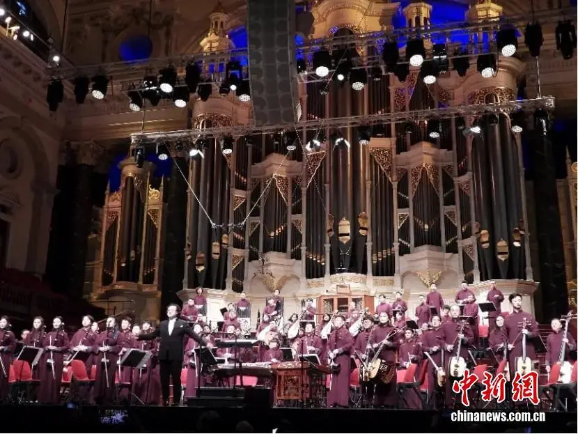 当地时间2023年12月21日,“中华风韵”音乐会在澳大利亚悉尼市政厅成功举行。图为香港中乐团为当地观众献上了兼具传统韵味和现代气派的中国民乐盛宴——《从红楼梦到兵马俑》。 中新社记者 顾时宏 摄